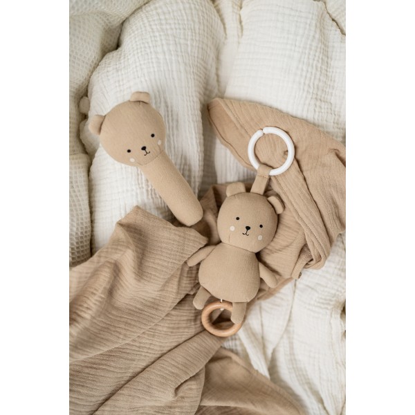 Kocyk, pozytywka i grzechotka- zestaw upominkowy beżowy miś Jabadabado