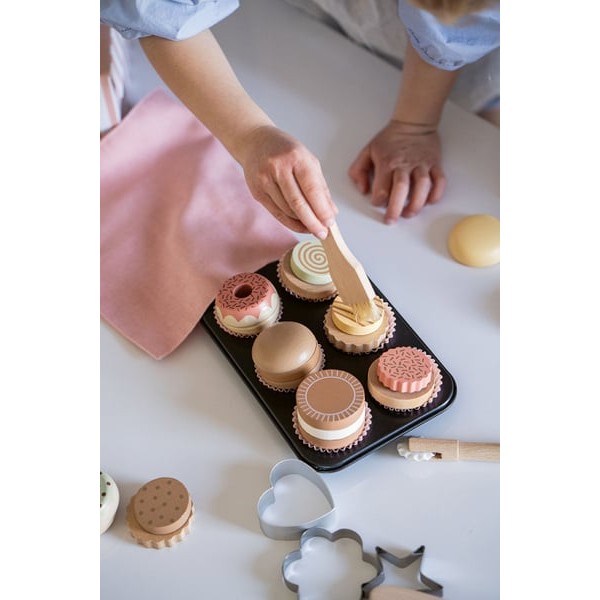 W tym bogatym zestawie jest aż 13 elementów! Taca do pieczenia, foremki, wałek, trzepaczka, narzędzia do dekoracji, miska do wypieków i inne kuchenne akcesoria małego piekarza, które pobudzą do wielogodzinnych rodzinnych chwil spędzonych na smacznym pichceniu.